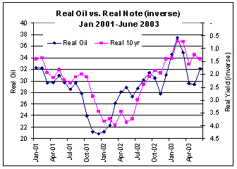 between the 10yr treasury and real crude prices tends to not carry through. One