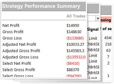 It is very important to accurately see how you are doing. The performance report has more than 200 performance measures, including various metrics, ratios, and interactive performance charts. The report can also monitor real-time trading, since it recalculates on every new order that has been placed.